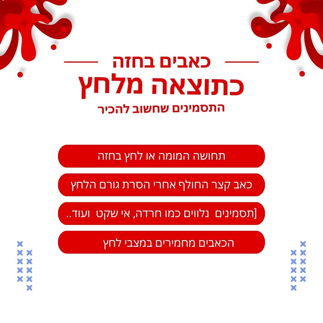 איך מזהים שזה קשור למתח ולא לבעיה לבבית? כאב מלחץ נפשי מגיע בזמנים של חרדה או מתח, משתנה בעוצמה ובמקום, משתפר עם נשימות עמוקות או הרפיה, לא מוחמר עם פעילות גופנית, מלווה בתסמיני חרדה כמו זיעה, רעד או חוסר אוויר.